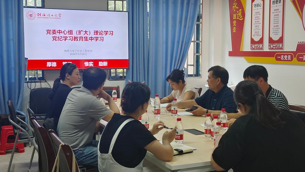 为深入学习贯彻习近平总书记关于党纪学习教育的重要讲话和重要指示精神,5月24日,物电学院党委理论学习中心组于08204-2室开展党纪学习教育集中学习。学院党委书记秦勤忠主持会议,学院党委委员参加学习。