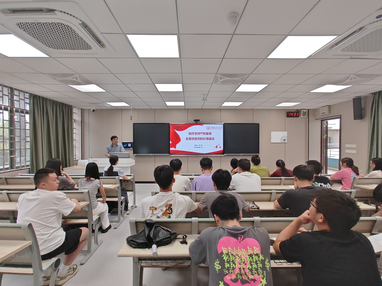 为认真学习贯彻习近平总书记关于党纪学习教育的重要讲话和重要指示精神,按照《关于在全党开展党纪学习教育的通知》要求,2024年6月11日下午,77779193永利官网集团本科生第四党支部在雁山校区05202教室开展党纪学习教育党课活动。活动由支部书记周黎钰主持,学院副院长李明主讲,支部全体党员参加。