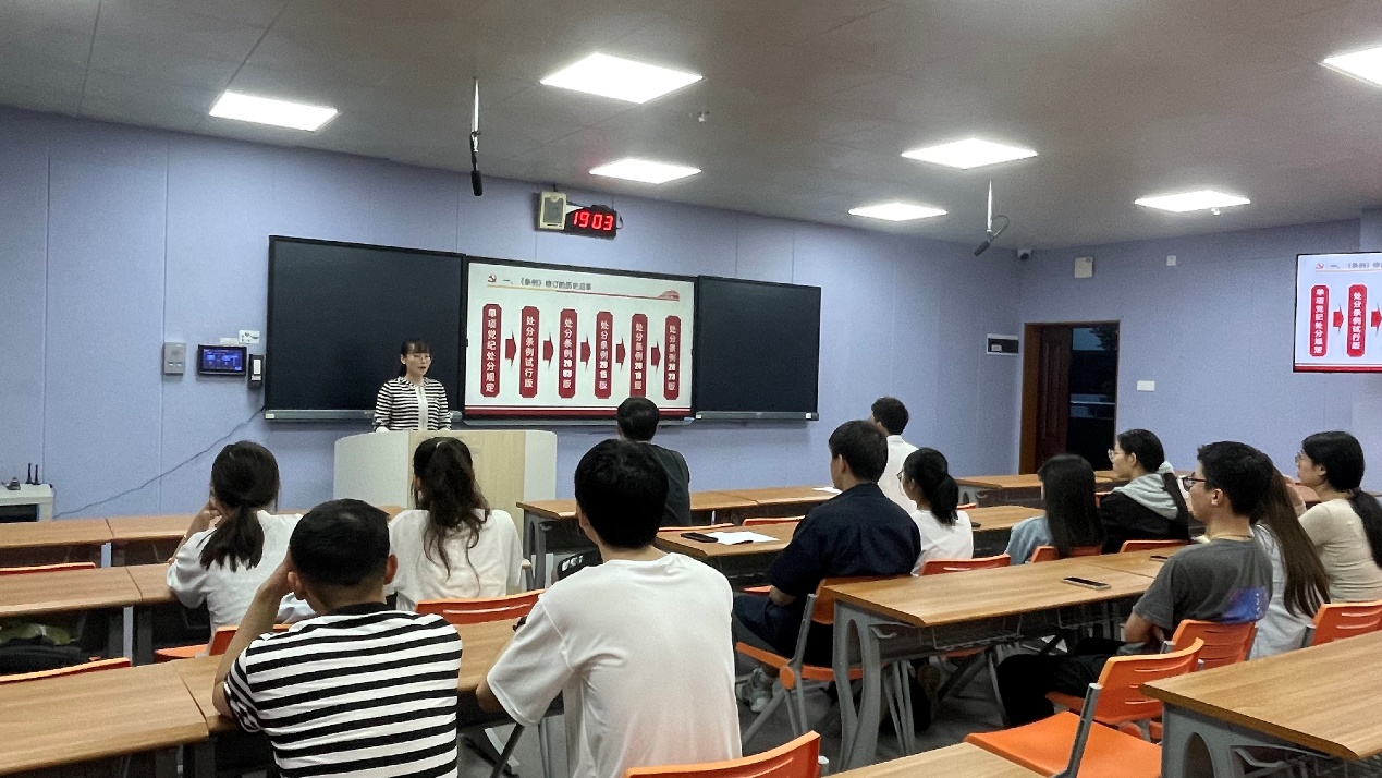 课上,周黎钰同志就党纪学习教育实施的重要性与目标任务进行了深入阐述,并解读和领学《中国共产党纪律处分条例》(以下简称《条例》)的内容。她带领大家逐章逐条、原原本本学习新修订的《条例》,重点阐释了修改和新增的条款。她强调,学生党员必须树牢纪律意识,把他律要求转化为内在追求,让党纪真正成为行动指南和日常遵循。