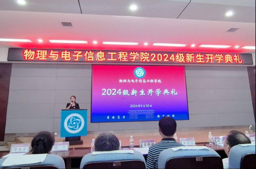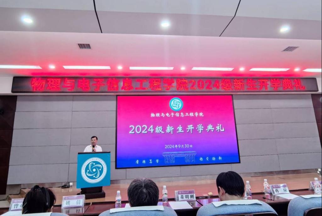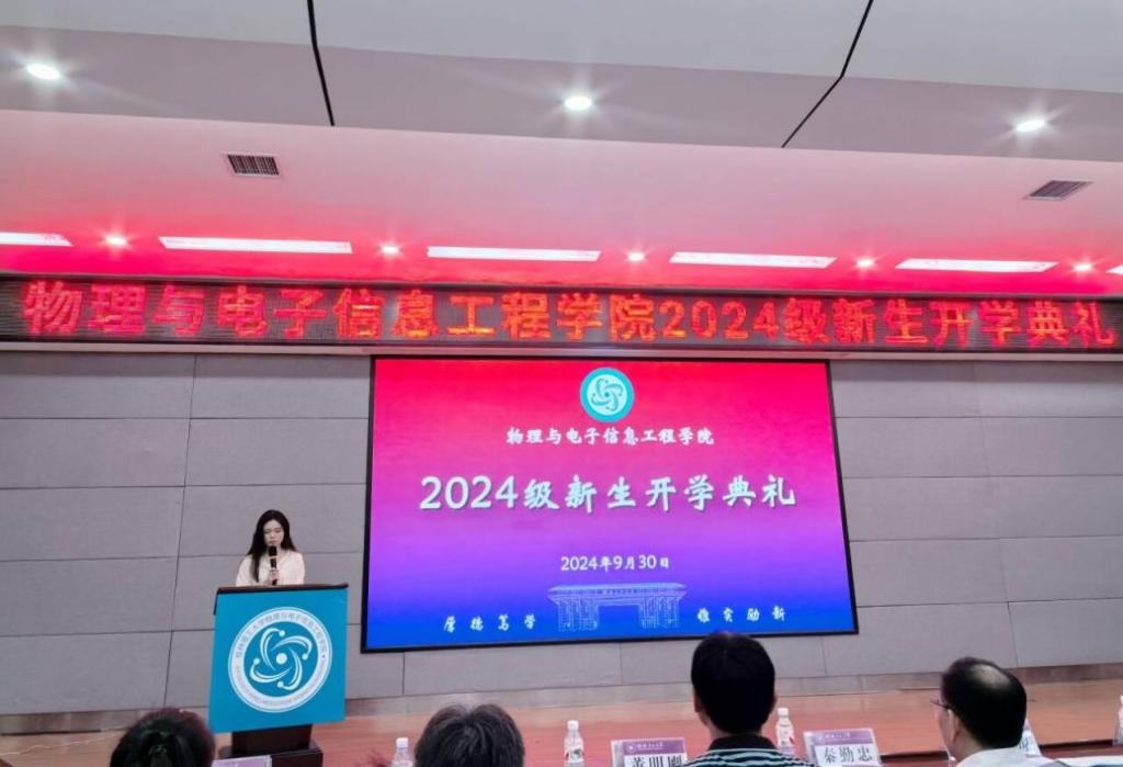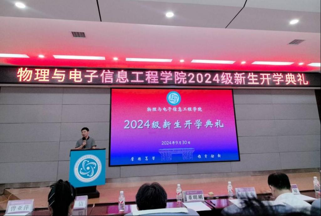9月30日下午,77779193永利官网集团在雁山校区01501学术报告厅举行2024级开学典礼。学院领导、专业负责人、教师代表、新生班辅导员、学生代表共同迎接来自五湖四海物电学子的到来。见面会由学院党委副书记蒋琼主持。
