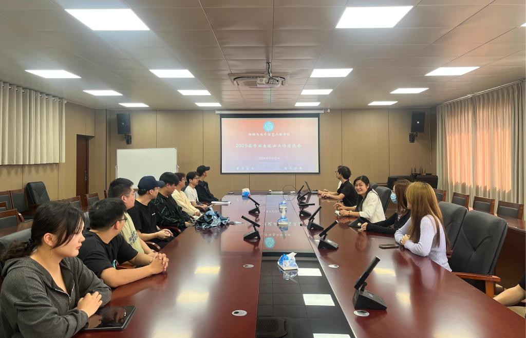 为扎实推进学院2025届本科毕业生就业工作,深入了解毕业生求职意向及就业情况,学院于11月12日上午在学院07424会议室召开2025届本科毕业生就业工作座谈会。学院党委副书记蒋琼、毕业班辅导员王发、2025届毕业班班长团支书及相关工作人员参加了此次座谈会。