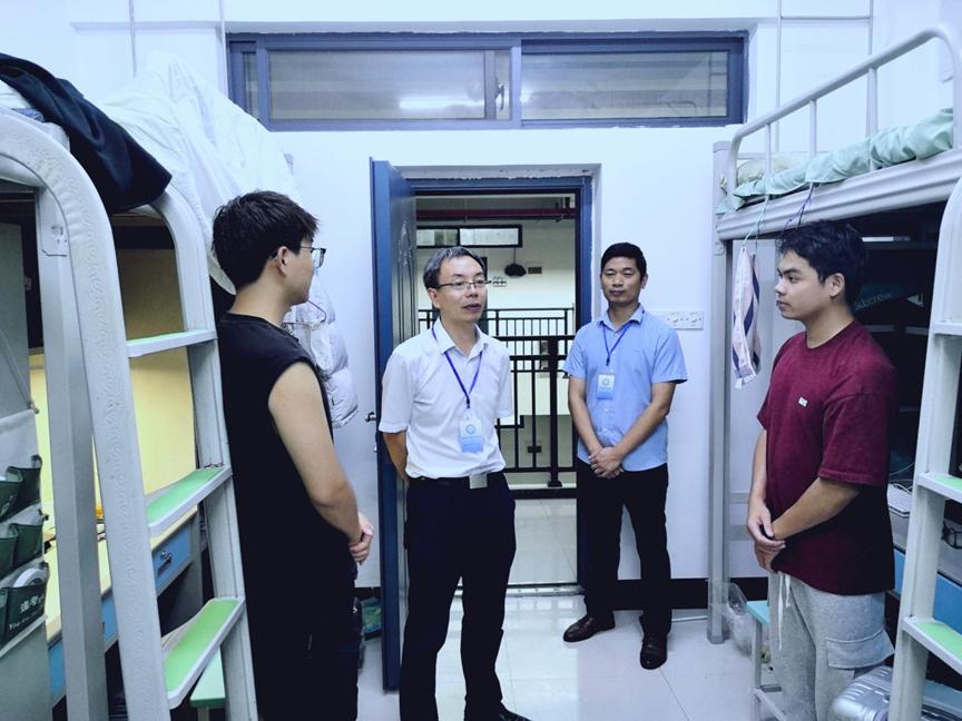 2024年9月8日下午,学院副院长张富文,院长助理王志勇老师一行深入学生宿舍,对当日报到的2024级研究生进行了走访,详细了解学生的住宿环境和学期规划,与新生们进行了深入的交流。
