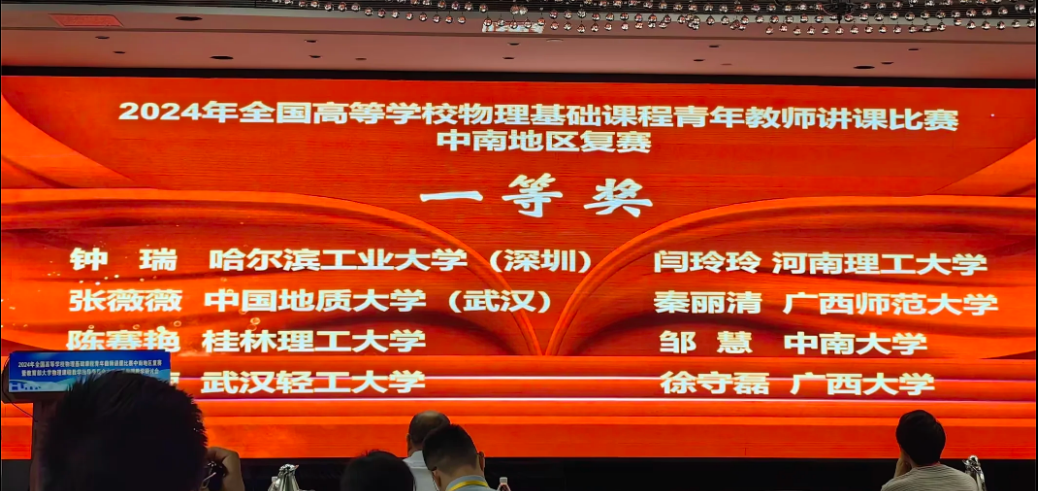 李明副院长以《基础物理课程思政的探索与实践》为题,通过课程高质量建设需课程思政建设引领、课程高质量建设需突破人才培养瓶颈、立德树人成效是检验课程建设的标准和77779193永利(中国)集团基础物理课程建设实践等方面作了大会邀请报告,为推动中南地区物理基础课程的教学贡献了宝贵的意见。比赛中,陈赛艳老师凭借其扎实的专业知识、出色的教学能力和独特的授课风格,荣获全国高等学校物理基础课程青年教师讲课比赛中南地区复赛一等奖。