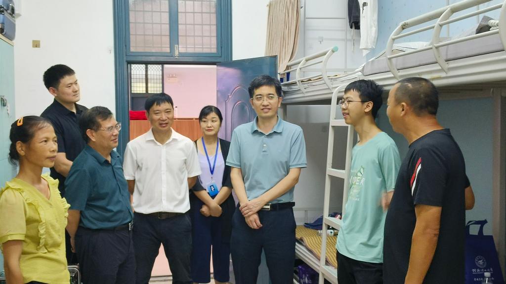 王磊副校长在学生宿舍与新生、新生家长亲切交谈