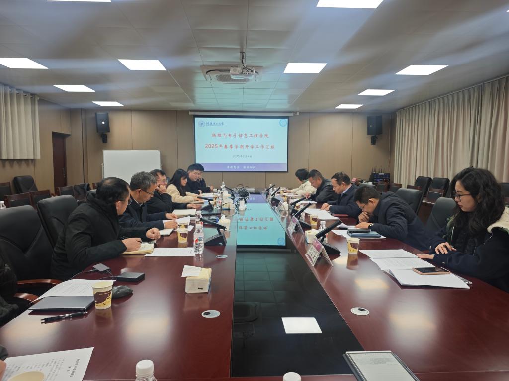 周国清副校长认真听取了学院的工作汇报,并对学院自成立以来所取得的成绩给予了充分肯定,同时也对物电学院发展提出以下几点要求:一是要结合专业特色抢抓人工智能发展风口,做出一些特色和突破;二是科研工作上下功夫,争取在国家自然科学基金申报上取得新突破;三是整合学校资源全力以赴推进专业认证,保证专业认证顺利通过;四是以博士点申报为抓手,做好学科发展规划。