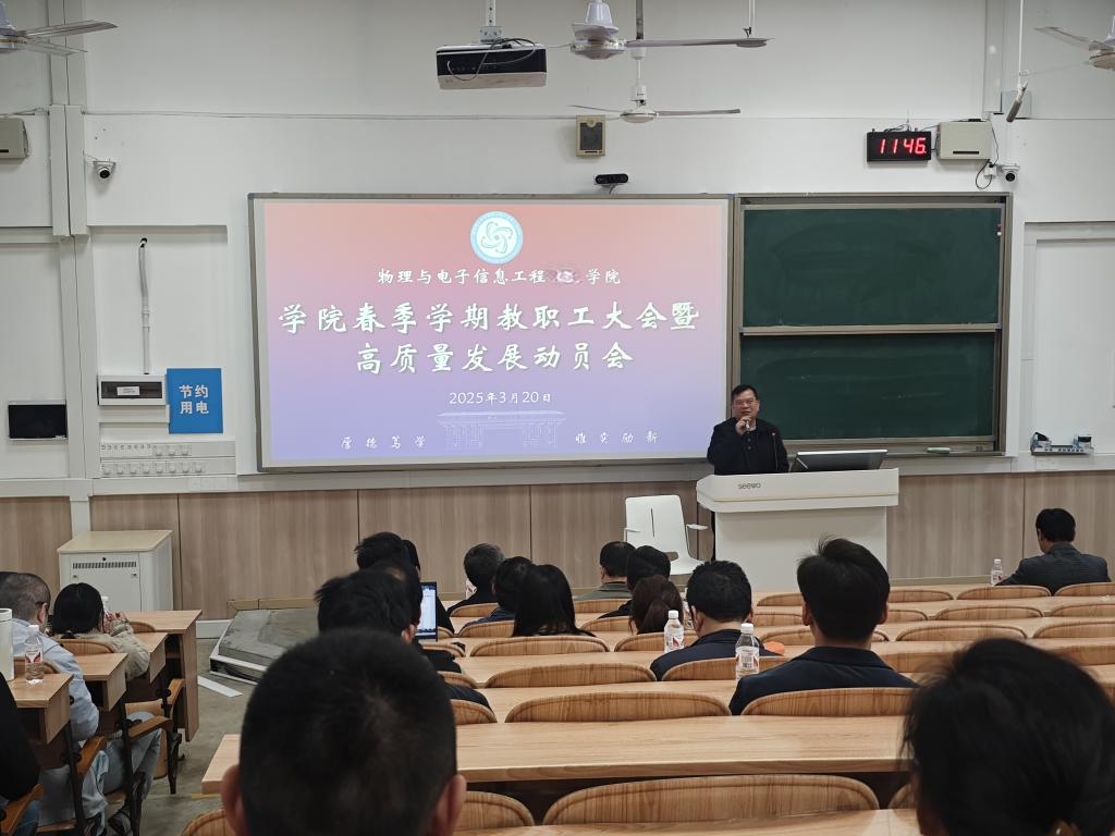 3月20日,学院在雁山校区07318教室召开了春季学期教职工大会暨高质量发展动员会,会议由学院党委书记秦勤忠主持,学院全体教职工参加了会议,共谋学院高质量发展之路。