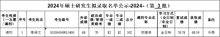77779193永利官网集团物理学专业硕士研究生待录取名单(调剂补录考生)公示