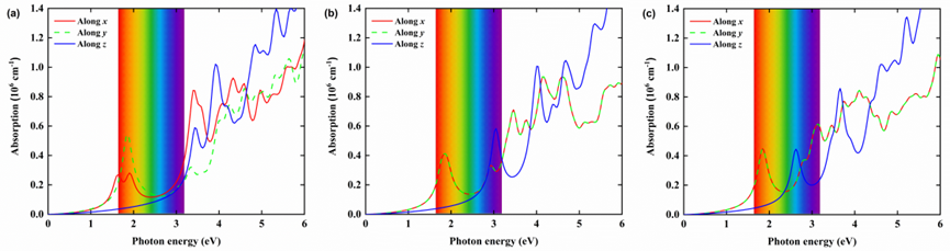 具有合适带隙和高载流子迁移率的半导体对电子、光电子和光伏应用至关重要。本工作通过理论计算系统研究了ATiN2(A=Ca、Sr和Ba)层状氮化物的力学、电子、光学和输运性质。这些氮化物泊松比大于0.26,Pugh模量比超过1.75,具有良好的延展性。CaTiN2和SrTiN2是直接带隙半导体,而BaTiN2是间接带隙半导体。它们显示出适用于光电和光催化水分解应用的带隙(1.54–1.78 eV)和带边位置。更有趣的是,它们具有超高的载流子迁移率和显著的各向异性。特别是,平面内电子迁移率达到104 cm2V−1s−1的数量级,而沿平面外方向的迁移率几乎为零。此外,空穴迁移率沿平面方向也非常大,所有这些氮化物的各向异性比高达约30。此外,这些ATiN2氮化物具有较高的光吸收系数(约105 cm-1)和较低的激子结合能。由于合适的带隙和带边位置、超高载流子迁移率和巨大的各向异性、优异的可见光吸收性能,ATiN2氮化物将成为电子、光电子、光伏和光催化应用中有前景的候选半导体。
